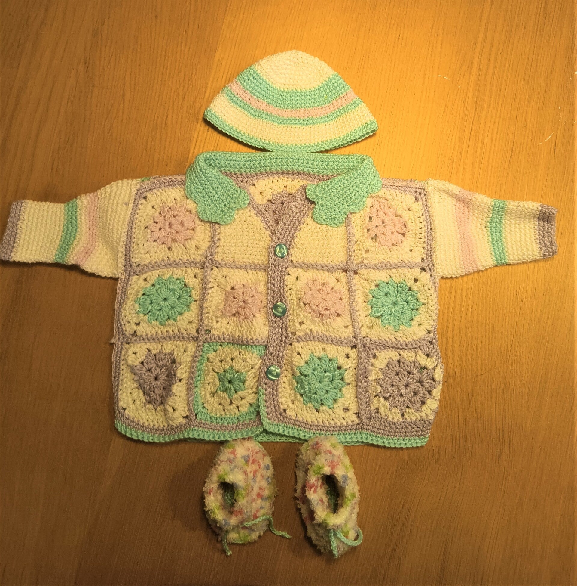 Diese wunderbare Babydecke besteht aus bunten Granny Squares.